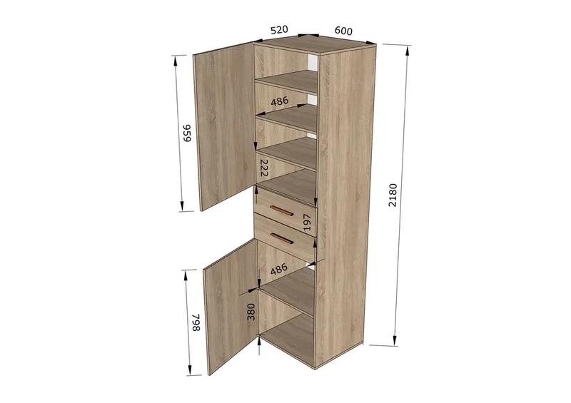 Размеры шкафа (Ш/В/Г): Ш 600/В 2190/Г 520 мм