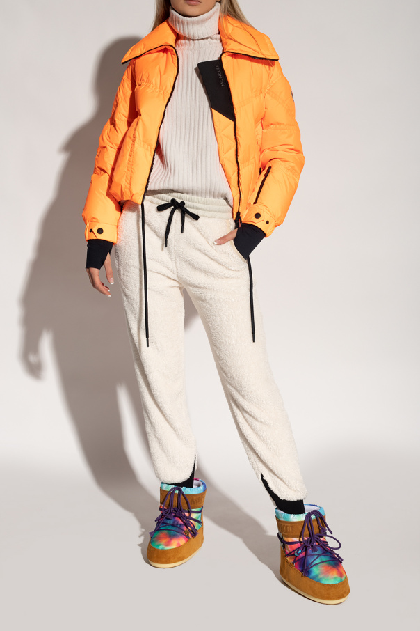 Multicoloured snow boots from Palm Angels x Moon Boot. Crafted from fabric and leather, this lace-up model showcases a tie-dye motif, an embossed logo and a beige and cream rubber sole.