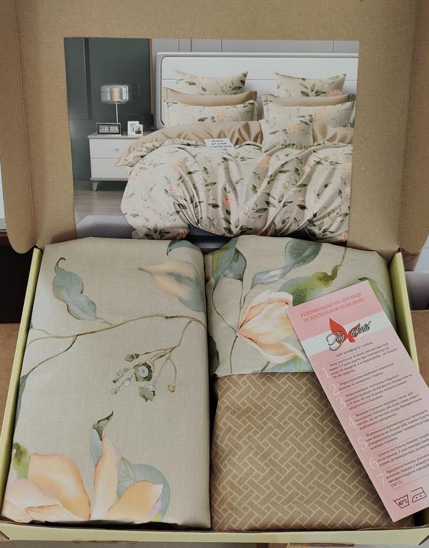 Зроблено в Україні?:Производство ,Принт:Цветочный ,Спальный размер:Двуспальные , Евро , Семейные ,Особенности:В подарочной упаковке ,Материал:Хлопок ,Описание