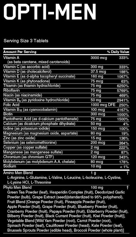 Opti men – мужской комплекс витаминов, предназначенных для спортсменов и всех кто ведет активный образ жизни. Выпускается производителем Optimum Nutrition из США. Улучшает силу и выносливость, укрепляет иммунитет. Разработан специально с учетом особенностей мужского организма (женщинам не рекомендуется).