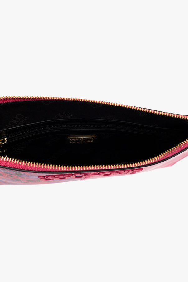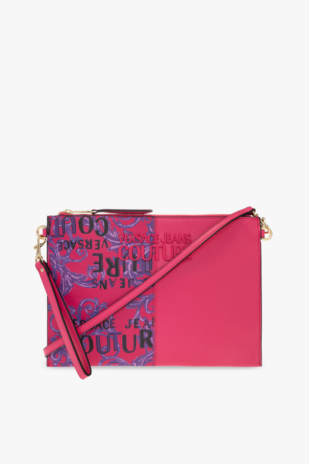 Pink and purple shoulder bag from Versace Jeans Couture. Made of faux leather, this design fastens with a zip and is decorated with the brand’s signature Logo Couture print. It is complete a detachable and adjustable strap, handle, gold-tone metal hardware and one internal compartment with one slip pocket and one zip pocket. Can also be worn as a handbag.