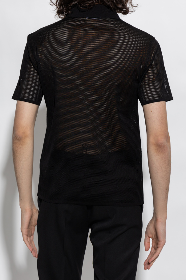 Black openwork polo shirt from FERRAGAMO. Made of cotton, this style features a button placket and ribbing on the short sleeves and hem.