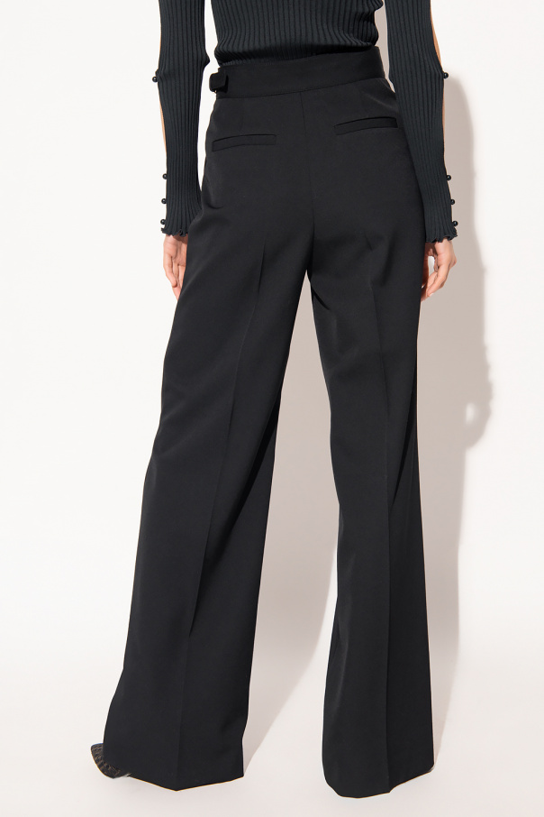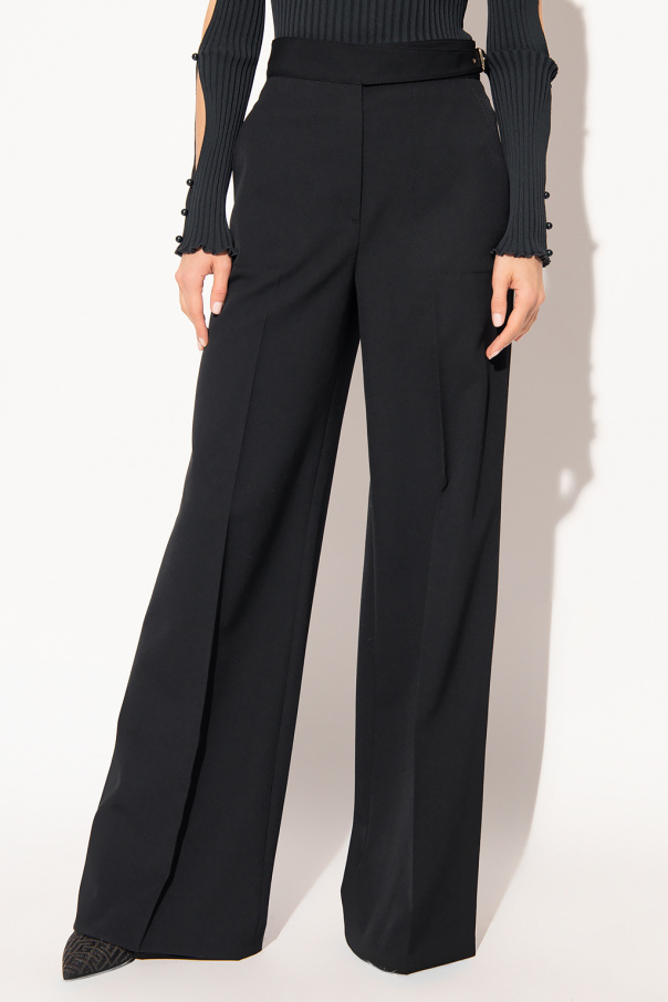 Black trousers from Red Valentino. Falling with wide legs, this pair features a zip fly with buttons, a belt with a gold-tone buckle, pleat detailing and four slip pockets.