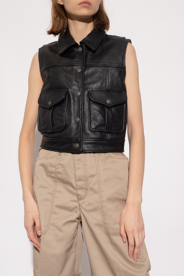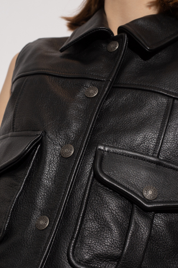 Black ‘L-Marina’ vest from Diesel. Crafted from grainy bovine leather, this style features snap fastenings and two snap-fastened flapped pockets on the front.
