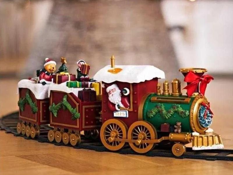 праздничное настроение с помощью поезда, оснащенного светодиодной подсветкой и