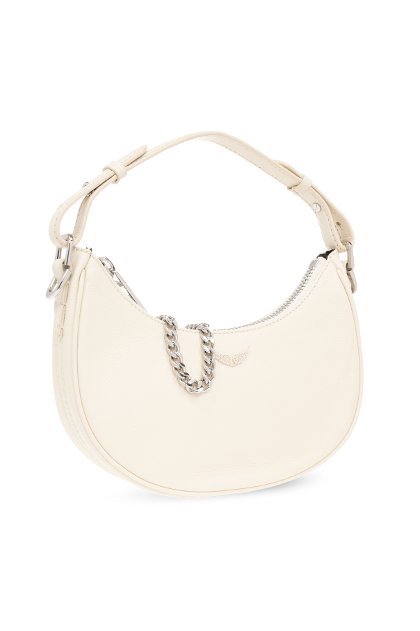 Cream 'Moonrock‘ shoulder bag from Zadig & Voltaire. Crafted from grained calf leather, this design secures with a zip and features a bejewelled logo application on the front. It is complete with a detachable handle, chain shoulder strap and adjustable strap with an embroidered logo, silver-tone metal hardware and one internal compartment with a slip pocket.
