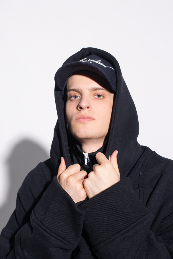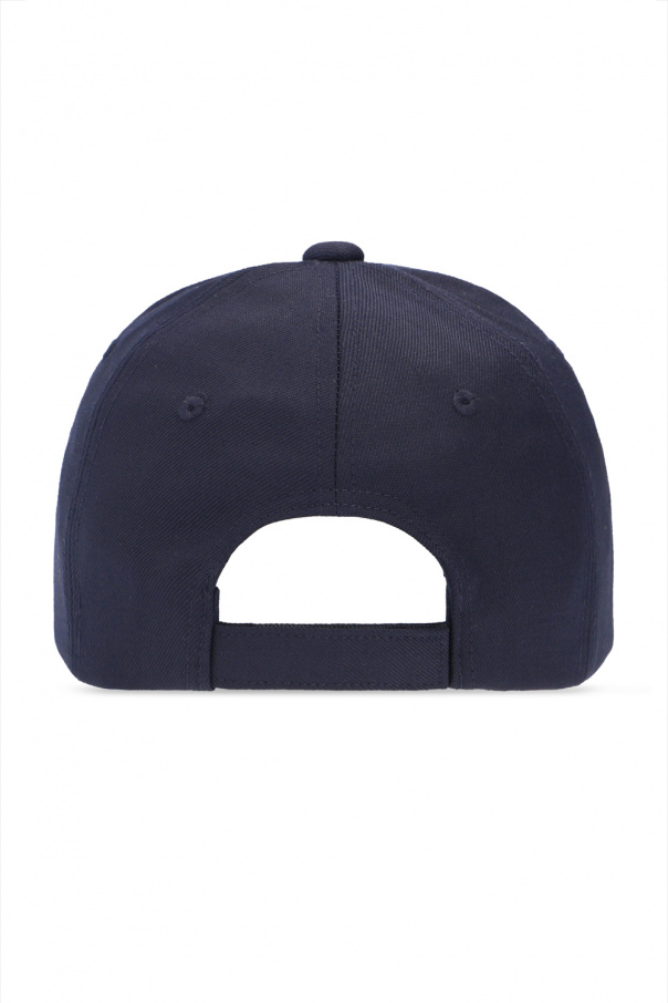 Navy blue baseball cap from Emporio Armani. Embroidered with the brand's logo in white on the front, this item features a velcro strap on the back.