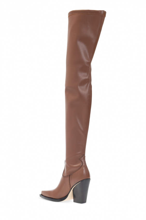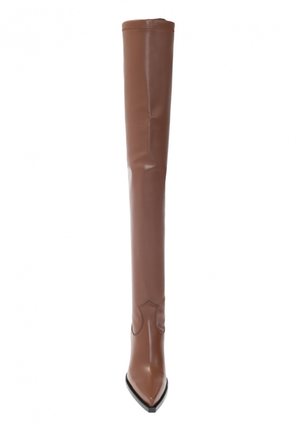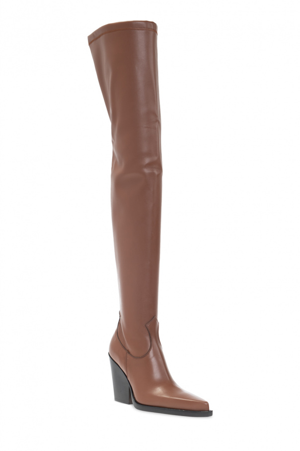 Brown ‘Vegas’ boots from Paris Texas. Crafted from faux leather, this pointed toe silhouette, this pair features stitching details, decorative heel and beige leather sole.