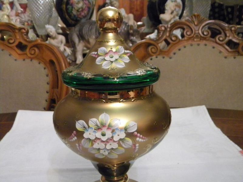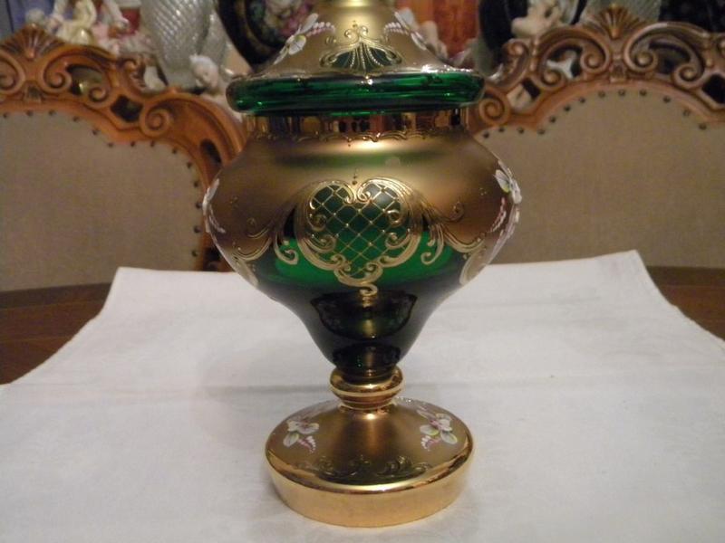Шикарная Ваза Бонбоньерка Эмаль Лепка Позолота Богемия Чехословакия Мини скол на горлышке под крышкой ( на фото ), больше повреждений и потертостей - нет Высота 25 см