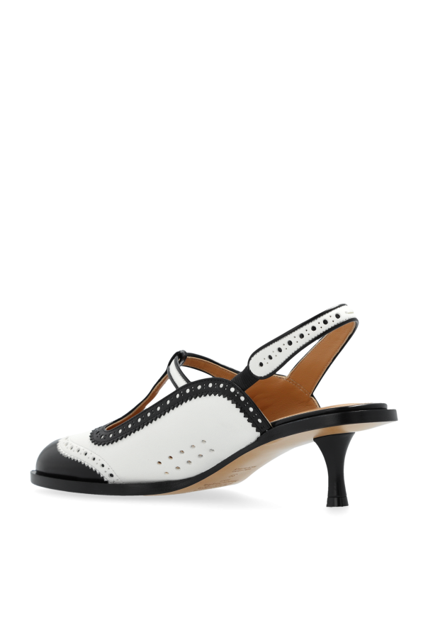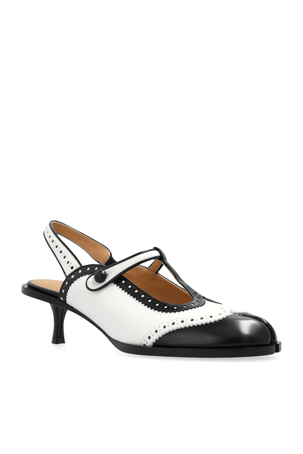 Introducing the Maison Margiela Heeled Shoes, a harmonious blend of elegance and distinctive style that marks a true testament to high fashion. These shoes are meticulously designed to embody the essence of grace with a touch of retro flair, making them an indispensable addition to any sophisticated wardrobe. The shoes feature a classic, two-tone pattern in black and white, reminiscent of the iconic Oxford style, enriched with exquisite brogue perforations along the front and the ankle strap line. Crafted from premium leather for both the exterior and interior layers, these heels promise not only unmatched style but also enduring quality. The leather sole further accentuates the luxury of these shoes, while the unique Tabi toe cut-out introduces an avant-garde element to the design. Designed with a medium-height, sleek heel, these shoes offer a perfect balance of elegance and stability, ensuring comfort without compromising on the style. The charming ankle strap, adorned with a delicate ruffle edge and adjustable closure, not only provides a secure fit but also adds a whimsical charm, making these heels truly stand out. Why Purchase These Heels? Elegant design with a unique retro touch, perfect for formal and casual occasions alike. Constructed from high-quality leather, ensuring durability and comfort. Feature an avant-garde Tabi toe cut-out, setting them apart from conventional designs. Medium-height heel offers stability and ease of walking. Adjustable ankle strap with a ruffled edge provides a snug fit while adding a dash of charm.