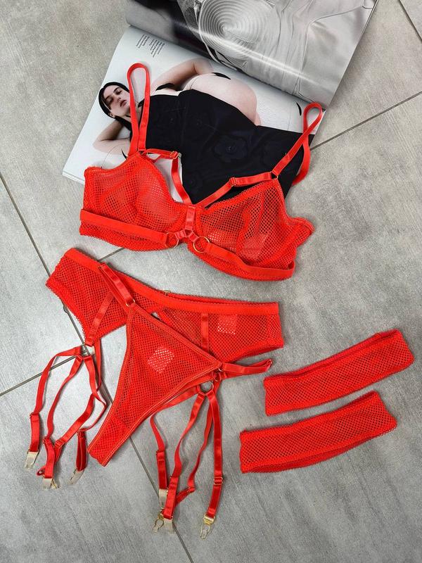 ▪︎Комплектація: бюст+трусики+ пояс+гартери.Розміри: S, M