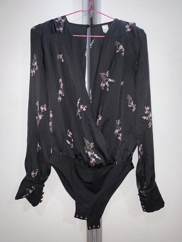 Боли H&M в черном цвете с фиолетовыми цветами.