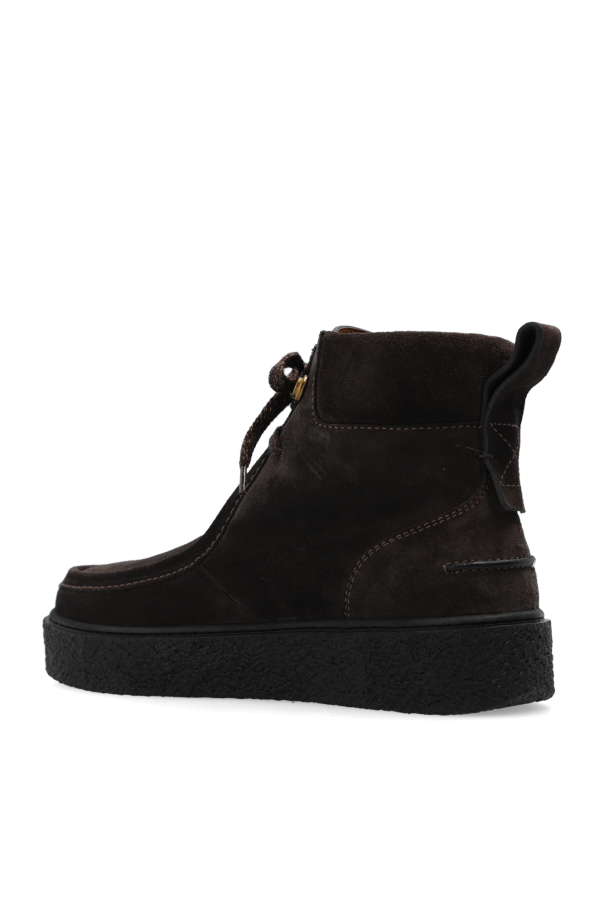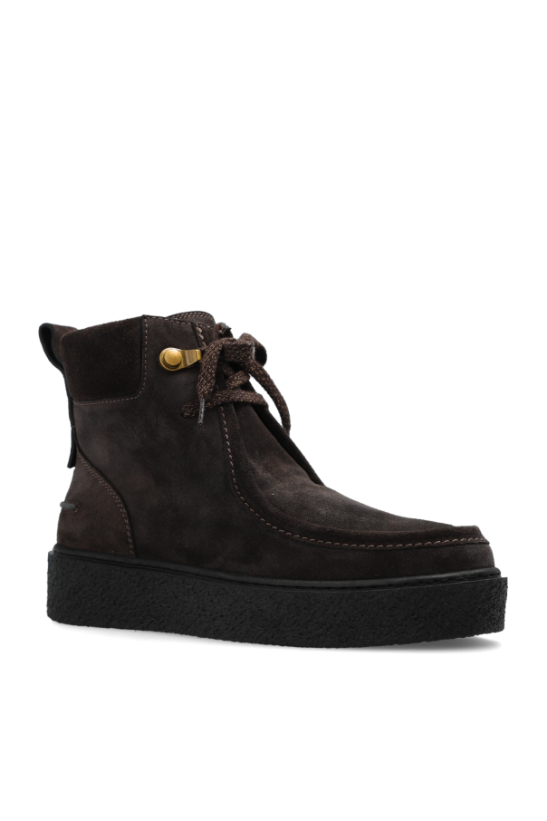 Dark brown ‘Jille’ ankle boots from See By Chloe. Crafted from calf suede, this lace-up model sits on a black rubber sole and features antiqued gold-tone metal details.