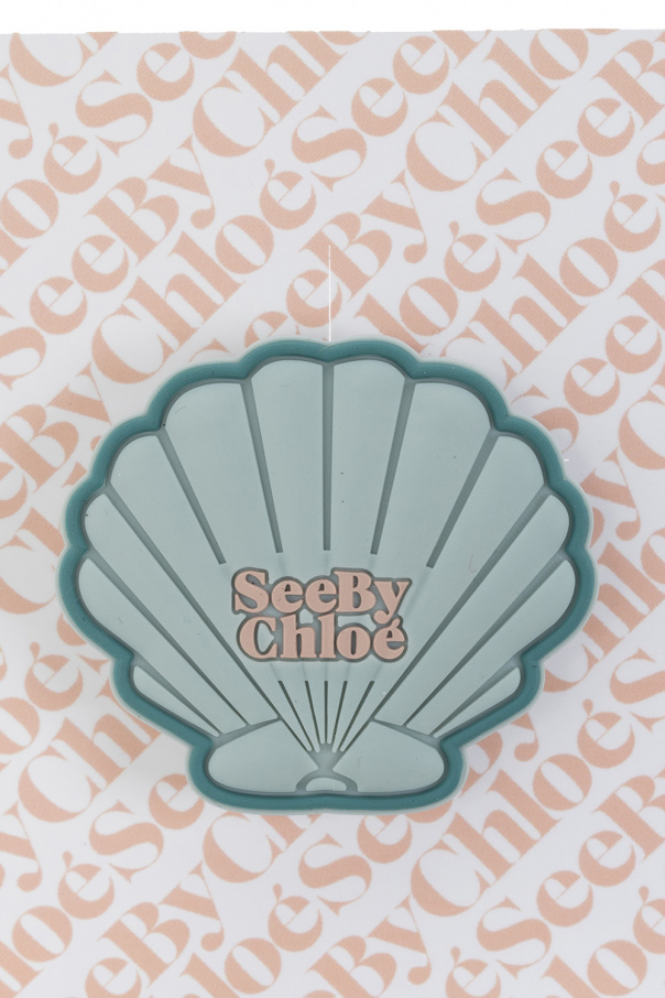 Blue and pink phone holder with a shell appliqué and logo from See By Chloé.