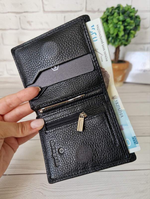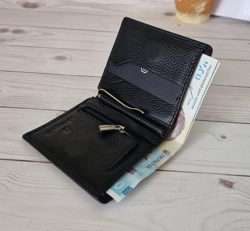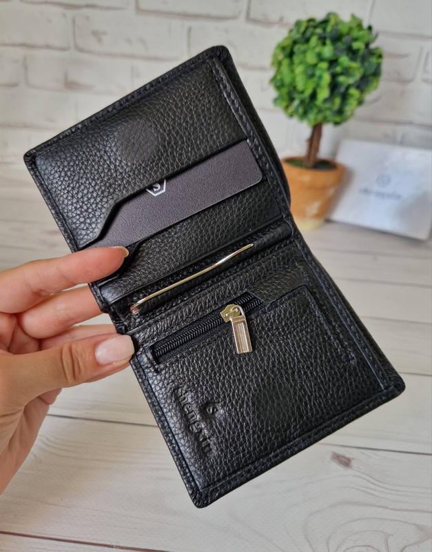 Особенностью этой модели является ее маленький размер, кошелек с легкостью поместится в любую маленькую сумочку, по середине кошелечка зажим(который можно вытащить если не пользуетесь) под мелкие купюры и одно основное отделение под купюры, также в середине расположена маленькое отделение для монет на змейке. Кошелек закрывается на магнитной застежке, вмещает 5 отделений для карточек или визиток