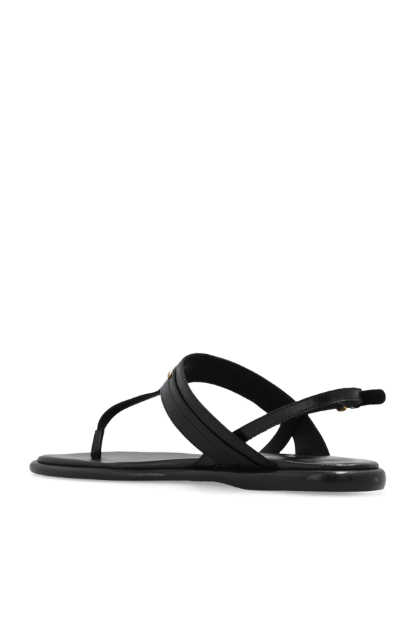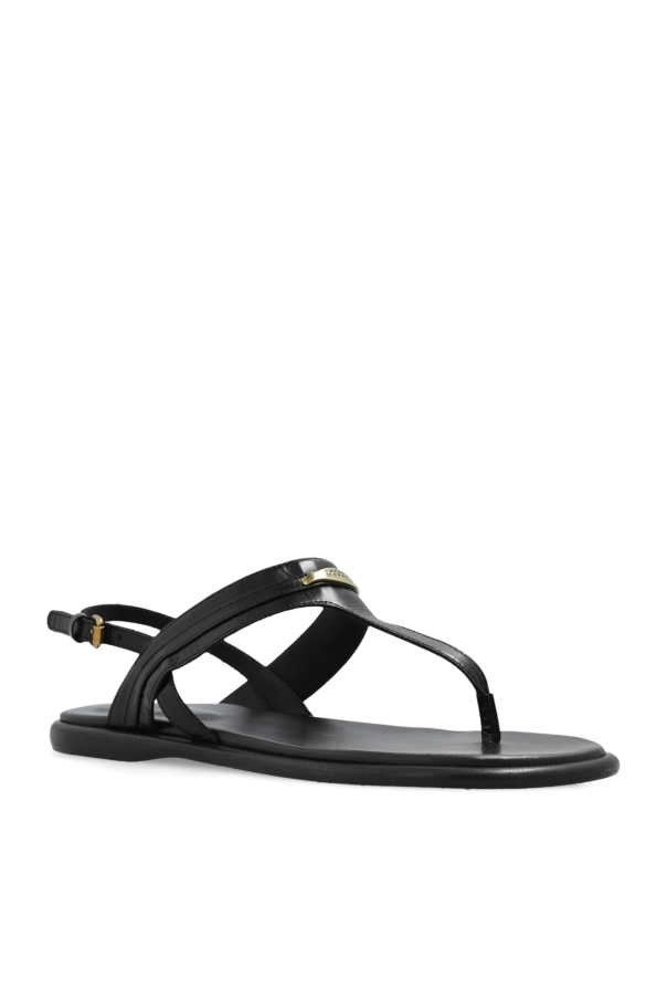 Black ‘Nya’ sandals from Isabel Marant. Made of goat leather, this item features an adjustable buckle strap, metal logo-engraved detail in gold-tone and a black rubber sole.