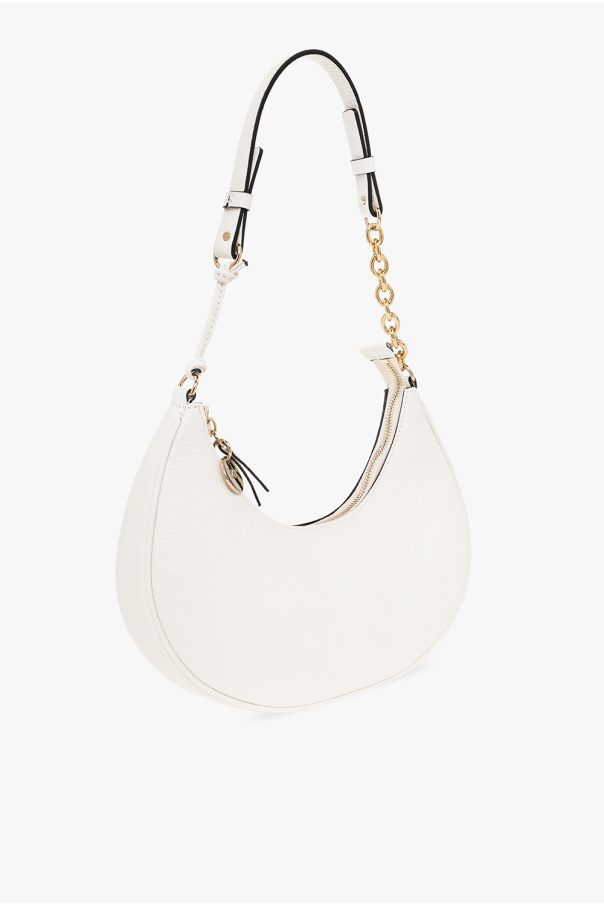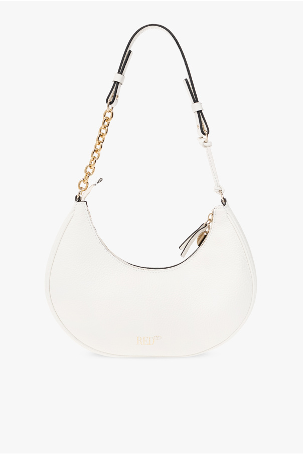 White shoulder bag from Red Valentino. Crafted from calf leather, this design features a zip fastening, a logo print, a shoulder strap, gold-tone metal hardware and one internal compartment.