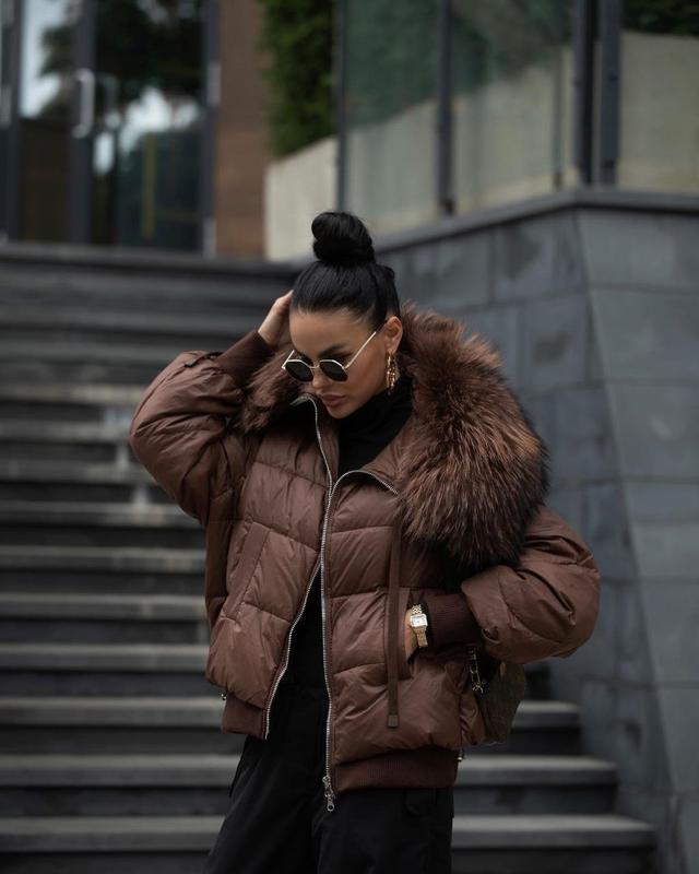 Куртка стьобана,коротка,наповнювач натуральный пух. Ткань плотная, хорошо защищает при любой погоде, лучший вариант для зимнего сезона