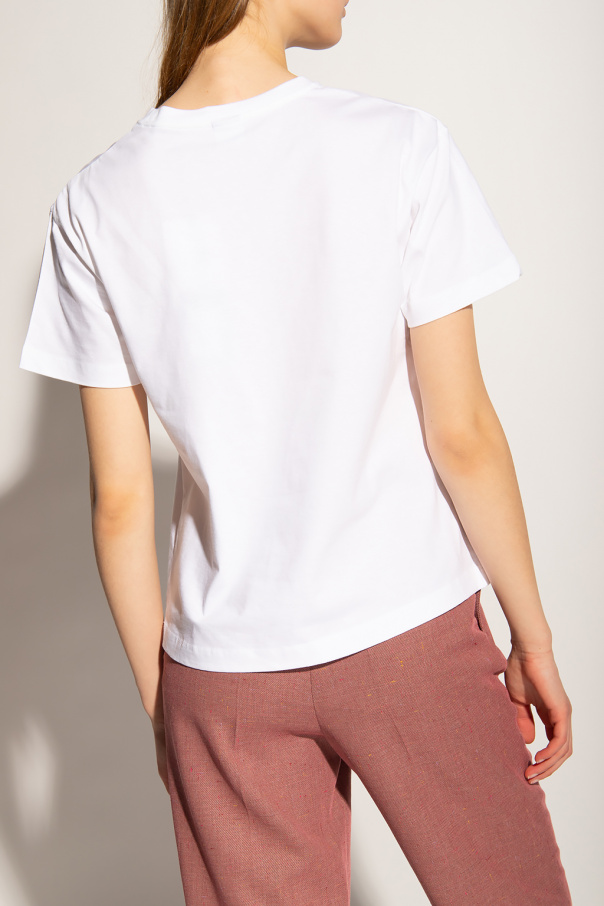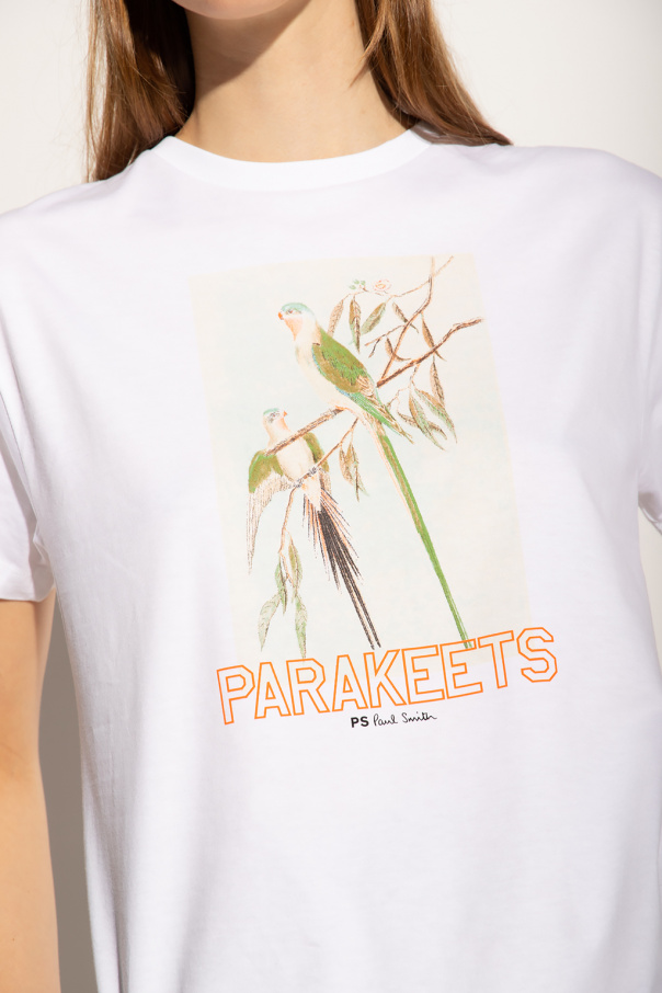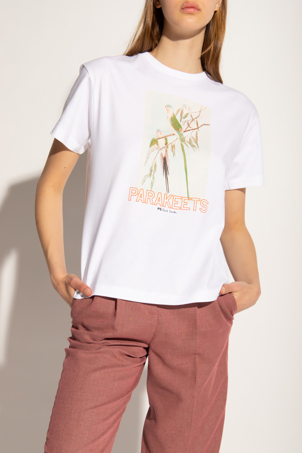 White T-shirt from Paul Smith. Crafted from organic cotton, this short sleeve design features a printed multicolored logo pattern and a ribbed round neck.