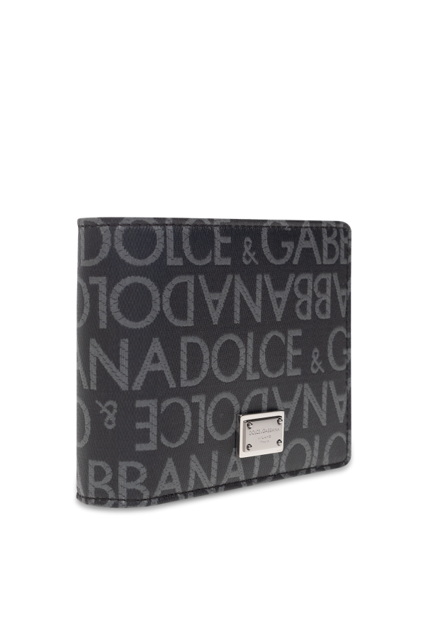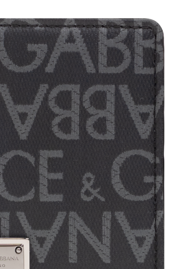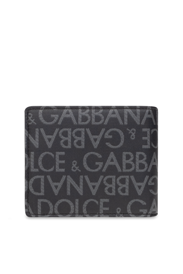 Black and grey wallet from Dolce & Gabbana. Made of fabric, this item features a zip fastening, logo pattern and silver-tone metal hardware as well as six card slots, one slip pocket, one bill compartment and a coin pocket inside.