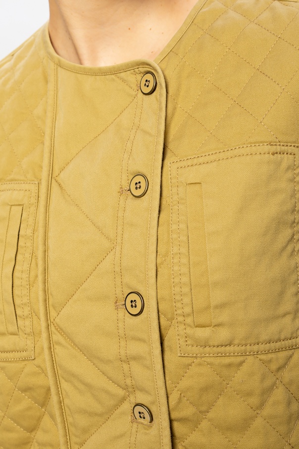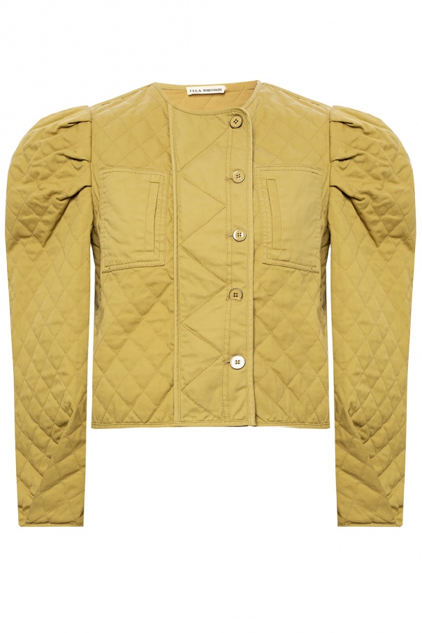 ‘Ario’ jacket from Ulla Johnson. Rendered in quilted cotton fabric, this style fastens via buttons and features two frontal welt pockets and long, puff sleeves.