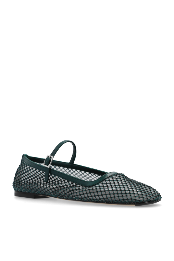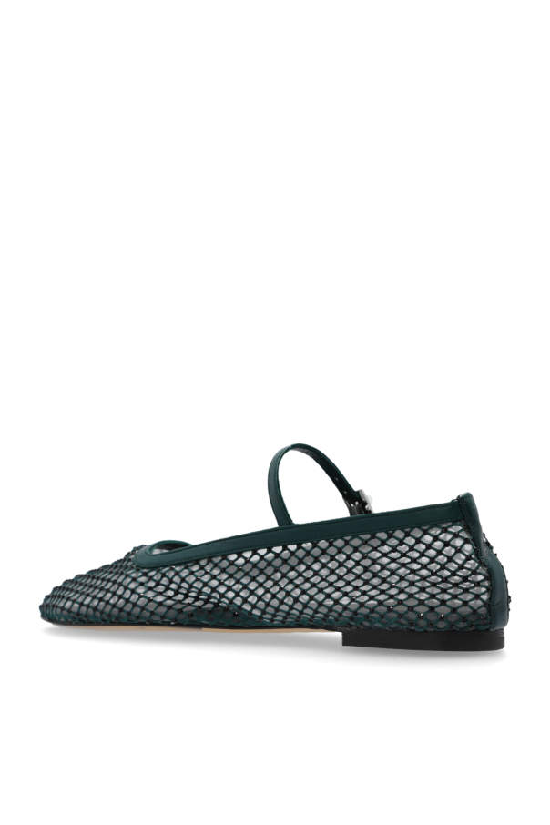 Introducing the 'Vanita' flats by the renowned designer Miista, a paragon of elegance and comfort melded into a single piece of footwear. These exquisite flats feature a distinctive dark green hue, enriched by the shimmering black crystals overlaying the breathable mesh material. The intricate design captures the essence of luxury through its functional yet aesthetically pleasing attributes. The pointed, square toe silhouette and the delicate ankle strap, adjustable for a personalized fit, exude sophistication. The interior boasts a high-quality lamb leather lining, ensuring not only durability but also an exceptional wearing experience. The sole, a harmonious blend of leather and rubber, provides both flexibility and slip resistance, making the 'Vanita' flats as practical as they are stylish. Every detail, from the subtle green ankle strap to the polished brand insignia on the insole, has been meticulously crafted to meet the standards of those who appreciate refined footwear. Why Purchase This Product? Exceptional Breathability: Perforated mesh design ensures your feet remain cool and comfortable. Luxurious Materials: Crafted with lamb leather and embellished with sparkling crystals. Superior Comfort: Leather and rubber sole offers unmatched comfort and durability. Designer Appeal: Stand out with Miista's signature elegance and craftsmanship. Versatile Style: Perfect for pairing with both casual and formal attire.