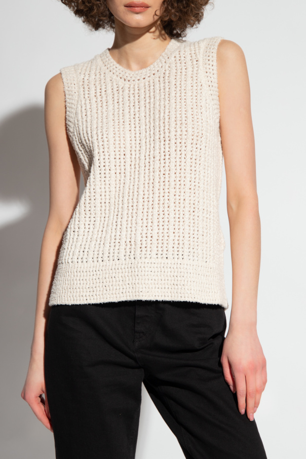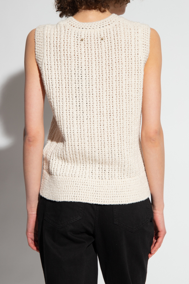 Cream vest from Golden Goose. Crafted from cotton with a distinctive knit, this style features a round neck.