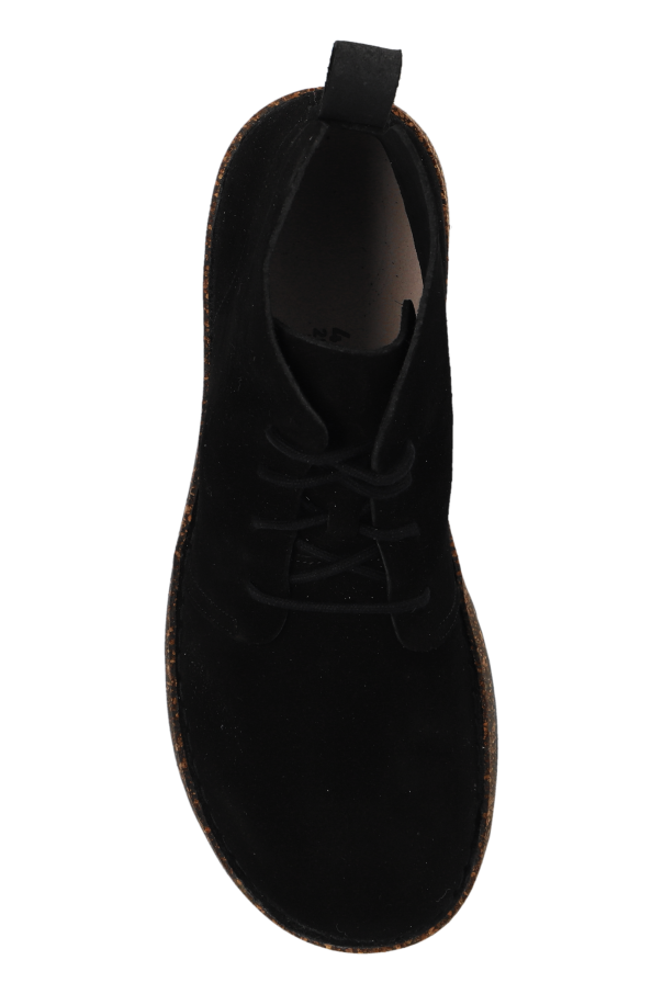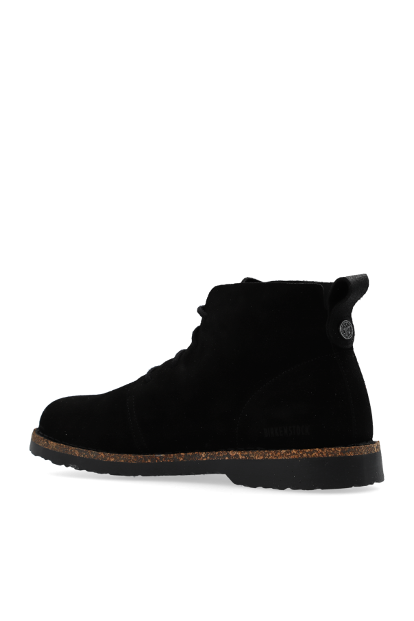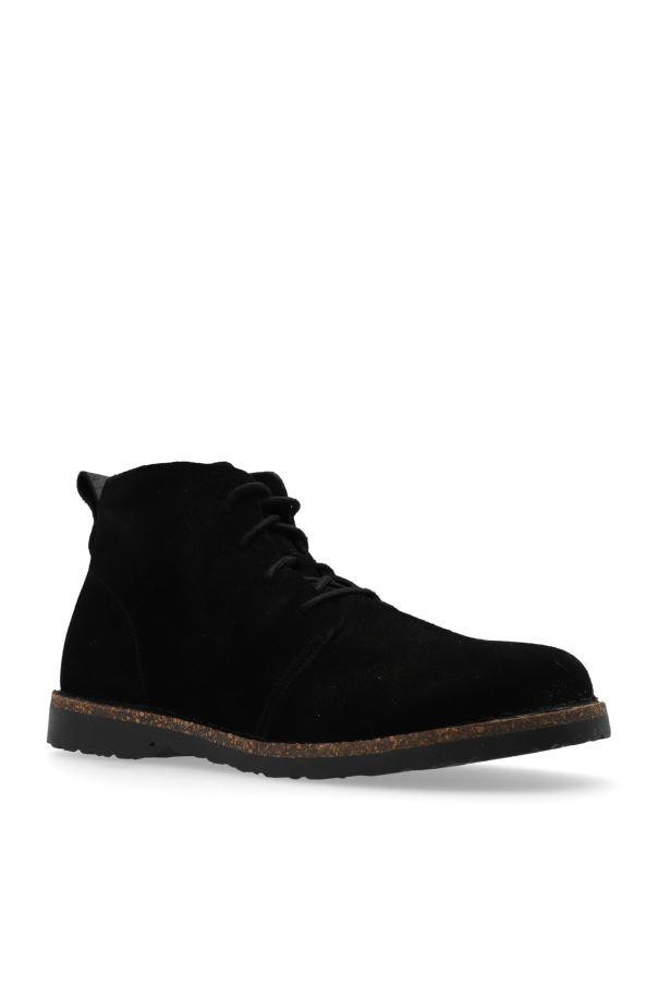 Introducing the ‘Uppsala Mid’ lace-up boots, a distinguished piece from the exclusive collection by renowned designer Birkenstock. These boots epitomize refined elegance and unmatched functionality, perfect for any occasion. Crafted from premium black suede, the ‘Uppsala Mid’ boots exude a luxurious aesthetic and offer a supple touch. The classic, elegant shape with a rounded toe and ankle-high design ensures both style and substantial support. The textured sole, composed of a durable blend of rubber and natural cork, provides exceptional grip and longevity. The lace-up closure allows for a custom fit, while a convenient heel loop facilitates effortless wear. A subtle designer logo graces the side, adding a touch of sophistication. Why Choose This Product? Luxurious Materials: High-quality black suede exterior with a smooth leather interior. Superior Craftsmanship: Meticulous attention to detail and construction. Versatile Styling: Perfect for both casual and formal ensembles. Enhanced Comfort: Ankle-high design offers additional support. Durable Sole: Textured rubber and natural cork for optimal traction. Exclusive Design: Featuring a subtle designer logo for a touch of elegance.