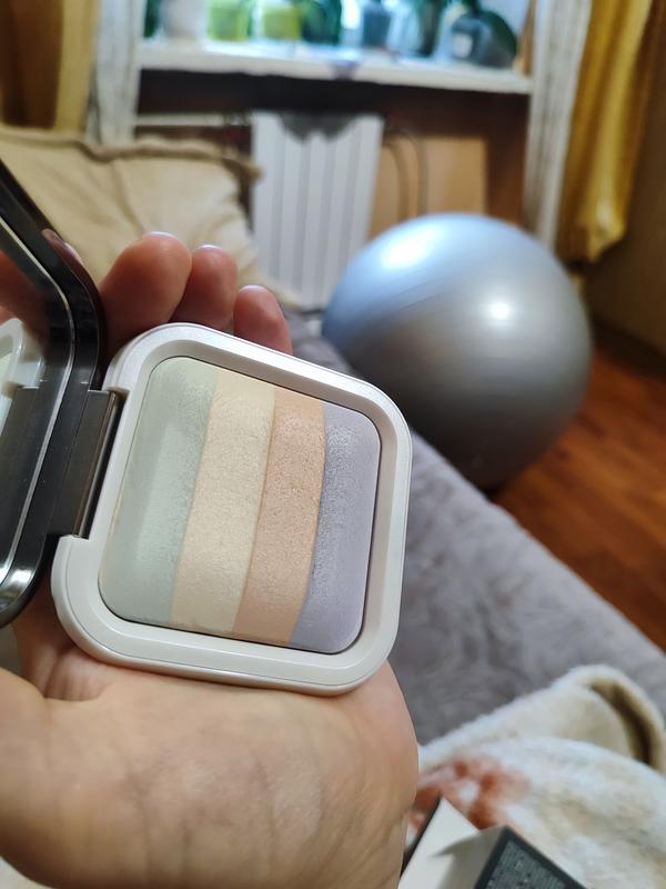 Фиксирующая и корректирующая запеченная пудра. Сочетает в себе 4 слегка корректирующих оттенка для смешивания, чтобы:- сублимируйте цвет лица и оживите цвет лица за счет нежного сияющего эффекта «второй кожи»;