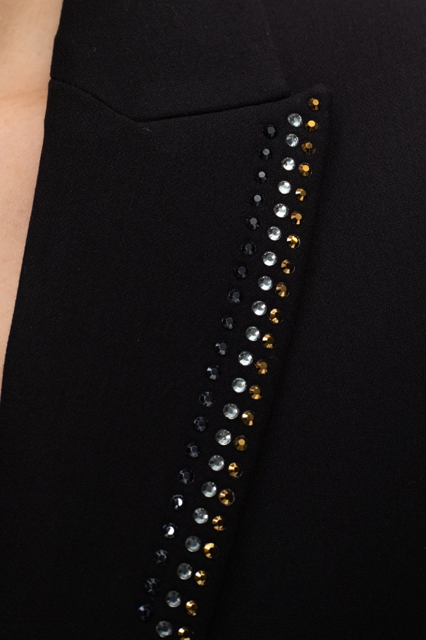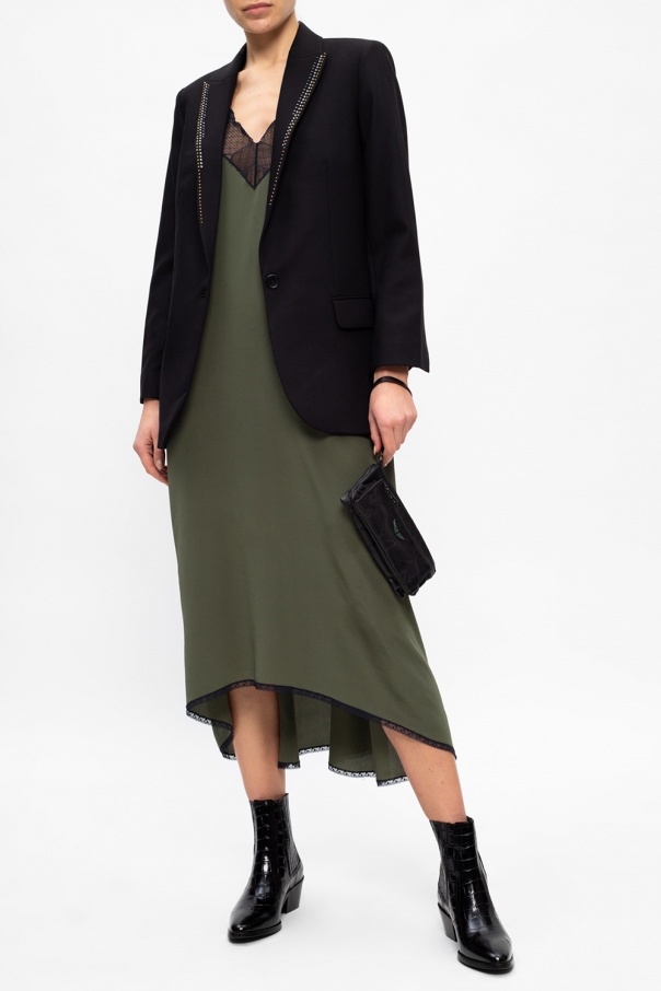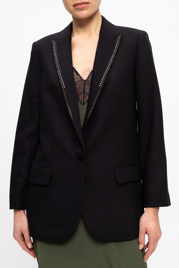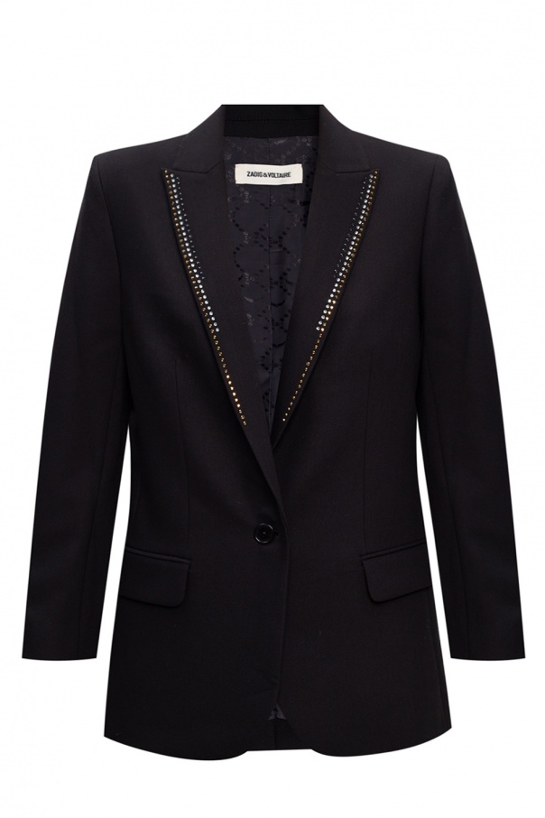 Black blazer from Zadig & Voltaire. Fastened with buttons, this garment features a studded appliqué, two flap pockets, peak lapels and long sleeves with slits.