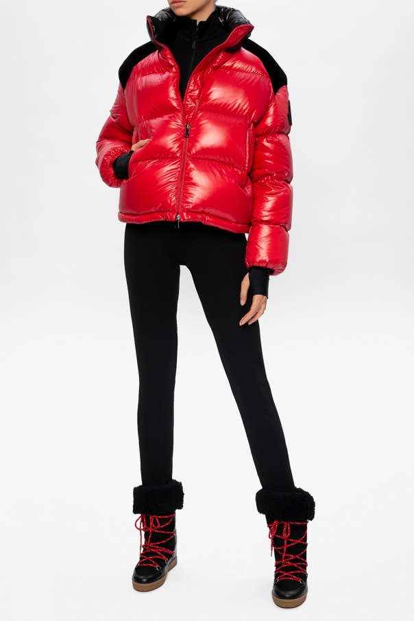Black ‘Nowly’ wedge moon boots from Isabel Marant. Made of suede and cow leather. Trimmed with sheep fur. Red lacing. Brown rubber sole.