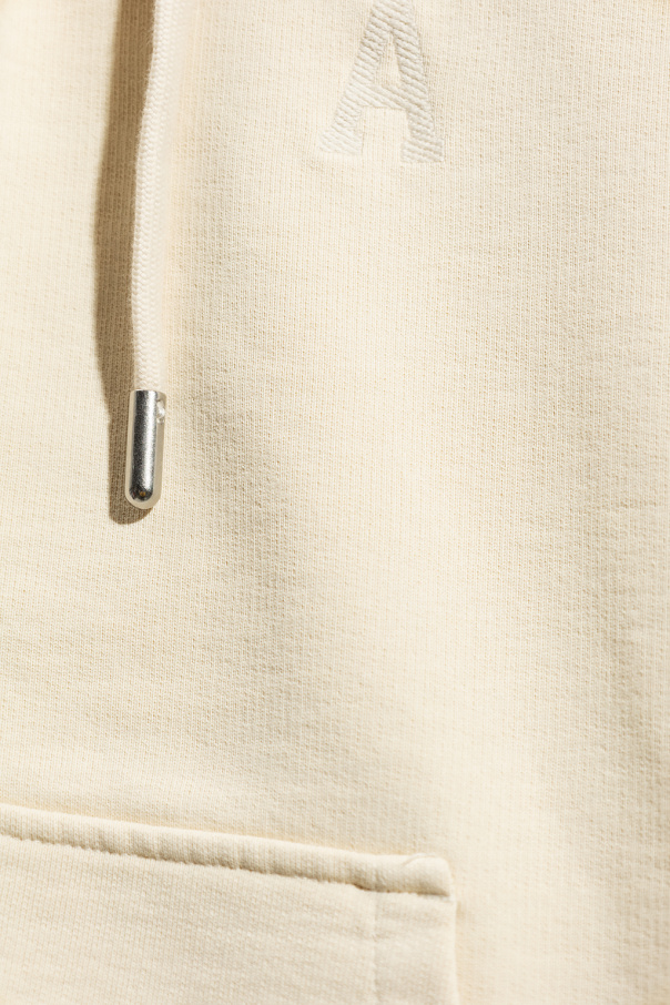 Cream loose-fitting sweater from Ami Alexandre Mattiussi. Crafted from organic cotton with the GOTS certificate, this garment features a zip fastening, Ami De Coeur embroidery, drawstring hood, two slip pockets and ribbed trims at the hem and cuffs.