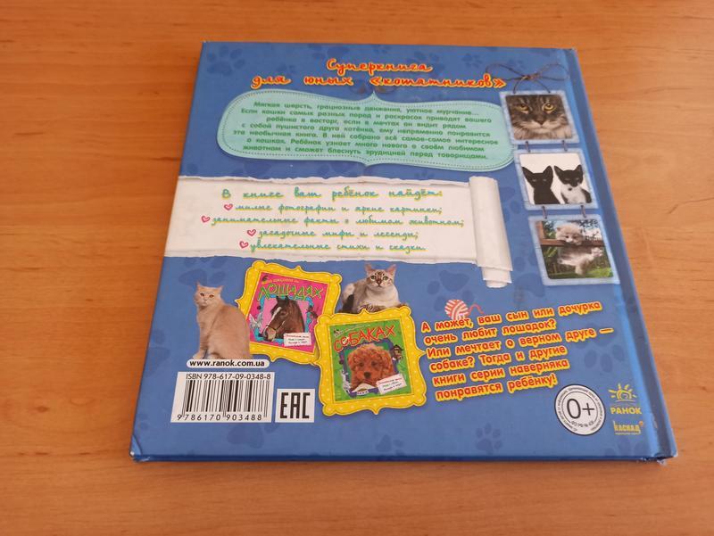 У книзі зібрано все найцікавіше про кішки: цікаві факти давнини та наших днів, загадкові історії про міфічних кішок, захопливі вірші, розповіді та казки. Милі фотографії та яскраві картинки неодмінно потішать юного шанувальника кішок. Дитина дізнається багато нового про цих дивовижних тварин і зможе блиснути ерудицією перед товаришами. Видання призначене для дітей старшого дошкільного та молодшого шкільного віку.Состояние: ХорошееЦвет:- Разноцветный