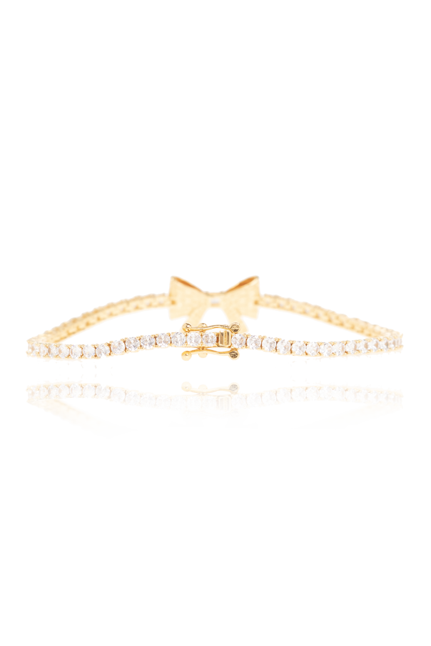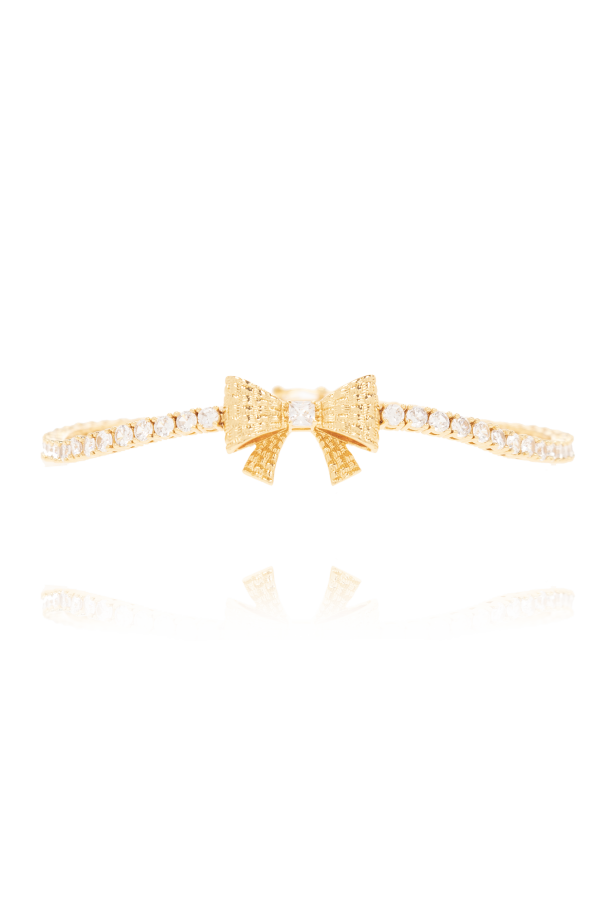 Gold-tone bracelet from Kate Spade. Fastened with a clasp, this item is decorated with a bow-shaped appliqué and cubic zirconia.