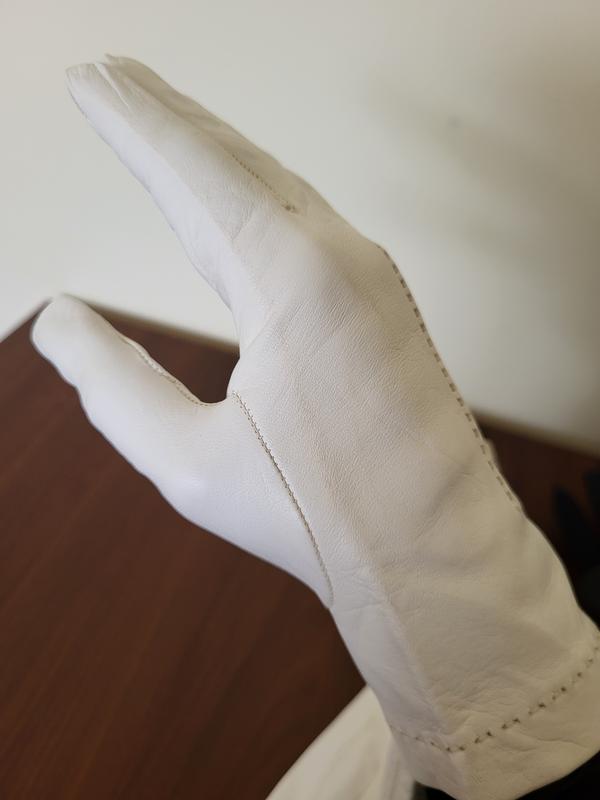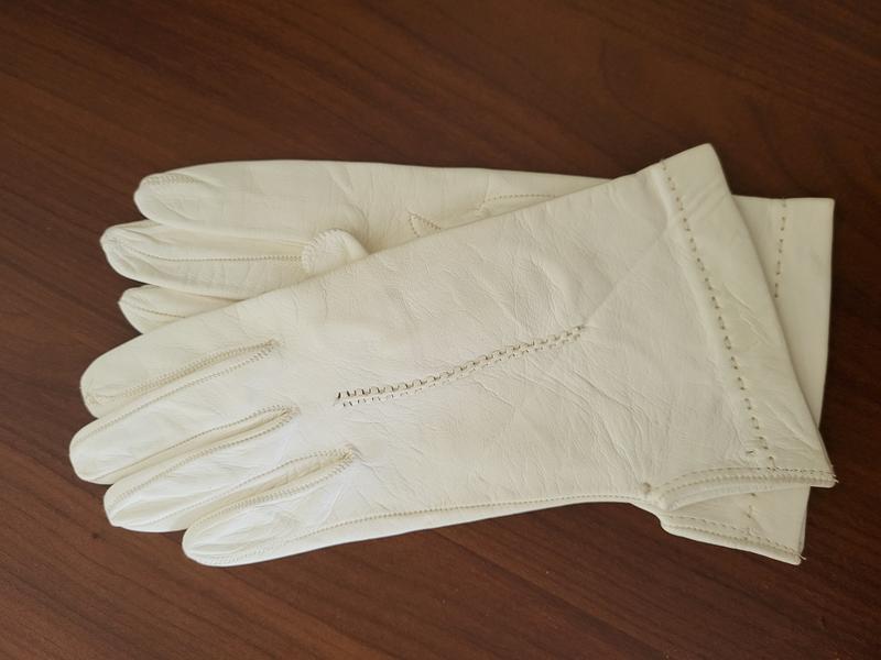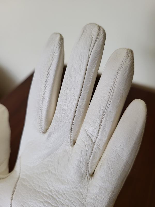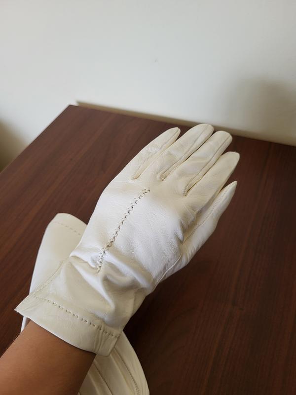 Продаю элегантные винтажные перчатки цвета слоновой кости, выполненные из мягкой натуральной кожи. Они имеют изящный классический дизайн с аккуратными декоративными швами, что придает им особый шарм.