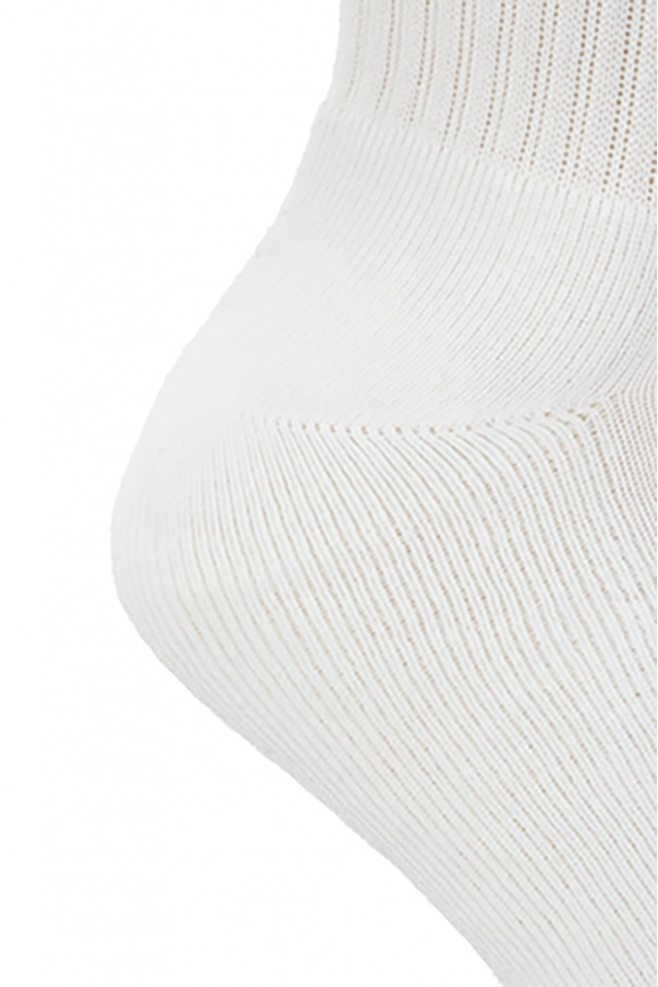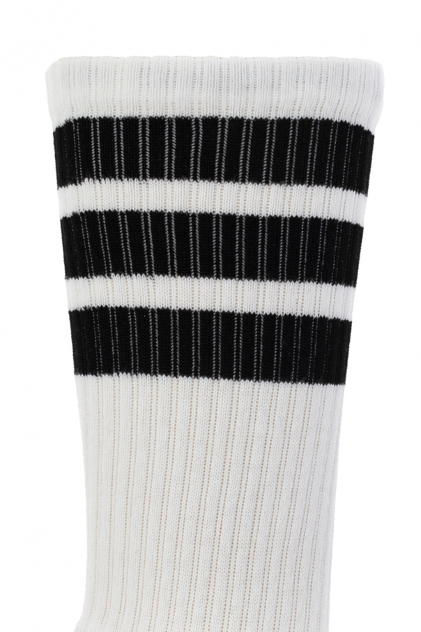White and black socks two-pack from ADIDAS Originals. Crafted from a blend of cotton and recycled materials, each pair features ribbed cuffs and the brand's logo and its signature three stripes.