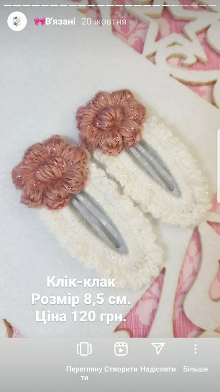 Вязаные заколочки. Полностью ручная работа. Основа клик-клак и зажим крокодильчик. Цена и размеры указаны на фото.