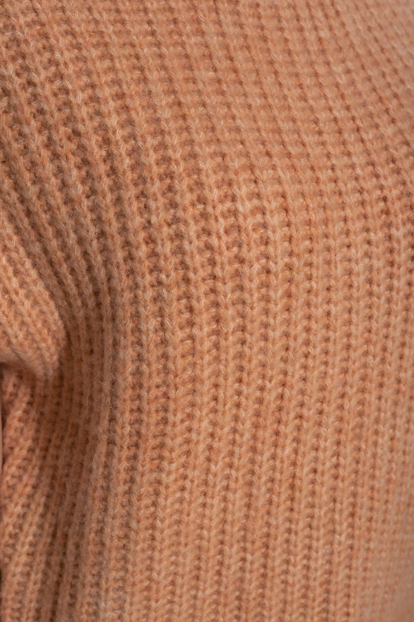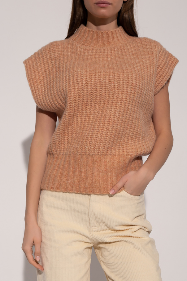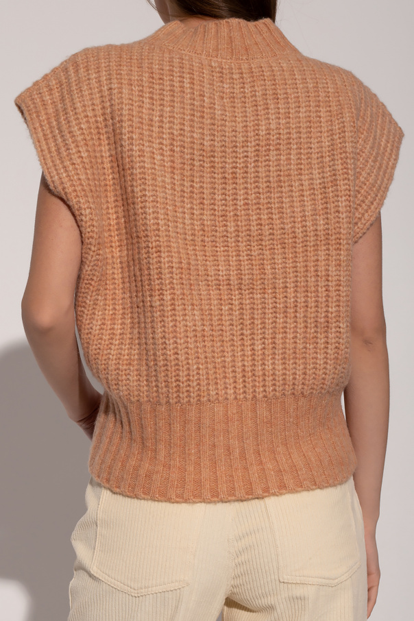 Light orange ‘Sila’ vest Holzweiler. Made of thick yarn, this garment has a ribbed neck and hem.