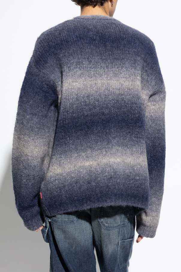 Introducing the K-RAMARRO Cardigan from Diesel's exclusive collection. This exquisite cardigan epitomizes refined elegance with its sophisticated design and luxurious materials. The dominant gray hue seamlessly transitions from darker shades of gray and navy at the top to lighter gray tones at the bottom, creating a mesmerizing gradient effect. The cardigan features a classic, straight cut with long sleeves and a V-shaped neckline that exudes timeless sophistication. It is adorned with blue buttons that provide a striking contrast to the predominant gray, adding a touch of contemporary flair. Crafted from a plush blend of high-quality alpaca and nylon, the material feels incredibly soft and sumptuous against the skin. The delicate texture suggests a premium composition, ensuring both comfort and durability. A distinctive red designer logo tag is subtly stitched at the lower back, a testament to Diesel's attention to detail and commitment to excellence. Why Choose This Product? Luxurious blend of alpaca and nylon for an unparalleled soft feel. Elegant gradient pattern in sophisticated gray and navy shades. Classic V-neckline and button closure for a timeless look. Subtle designer logo for a touch of exclusivity. Perfect balance of elegance and everyday comfort.