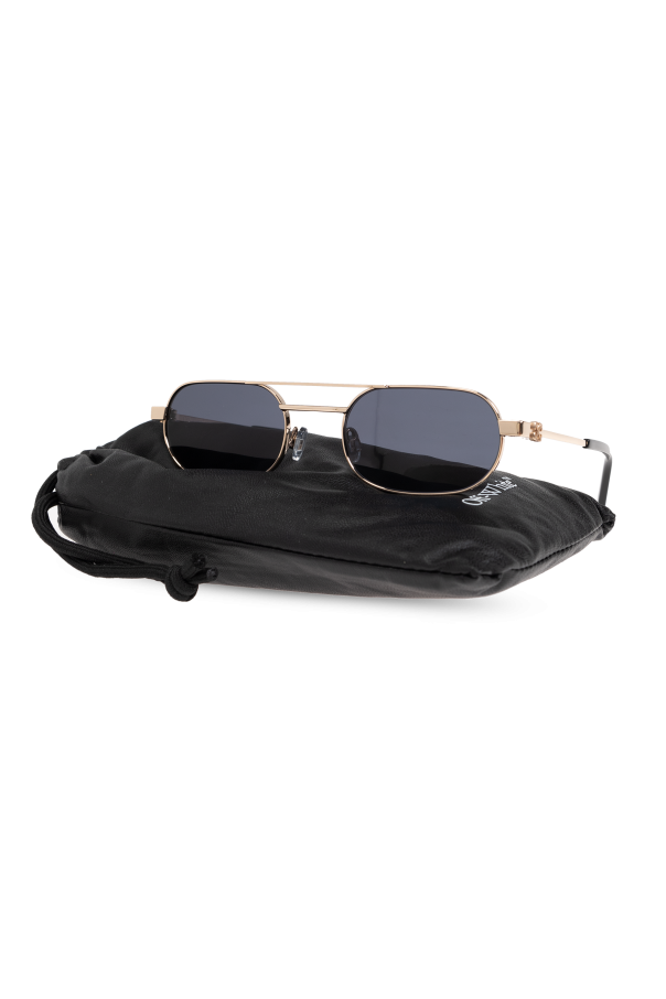 Introducing the Vaiden Sunglasses by the illustrious Off-White, a beacon of modern sophistication and unparalleled style. These unisex sunglasses deftly combine contemporary flair with timeless elegance, making them a quintessential accessory for the discerning fashion aficionado. The rectangular frames with gently rounded corners exude a sleek, modern aesthetic. Crafted from luxurious metal, the frames boast a resplendent golden hue, perfectly complemented by the dark gray lenses, which provide 100% UV protection for your eyes. Adding to their allure, the sunglasses feature subtle decorative elements or logos on the temples, reinforcing their haute couture pedigree. Accompanied by an elegant black case, the Vaiden Sunglasses ensure both style and practicality. Why Choose This Product? Designed by Off-White, renowned for redefining modern fashion. Unisex design suitable for any occasion and style. High-quality golden metal frames with a modern rectangular shape. Dark gray lenses offering full UV protection. Comes with a stylish protective case.