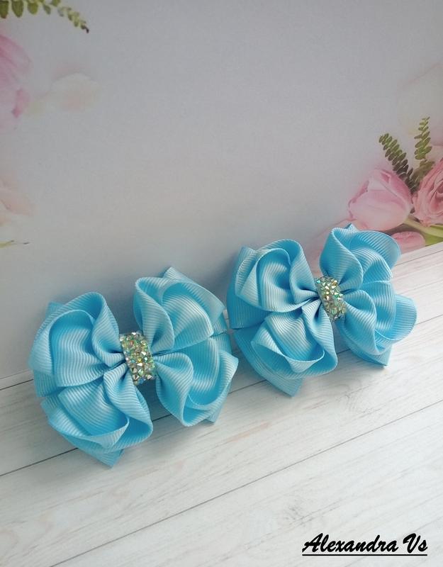 Длина бантика 8,5 см. Закрепленные на резинки отличного качества. В наличии. Цена указана за пару