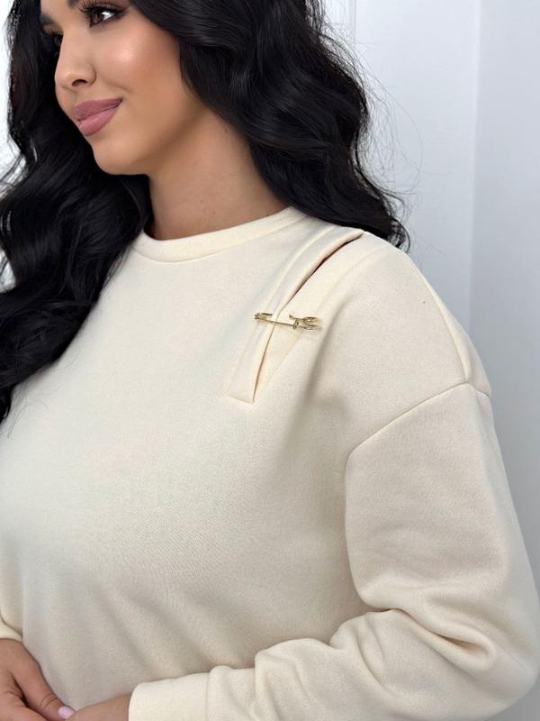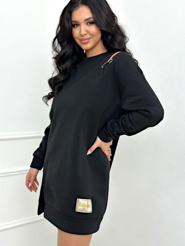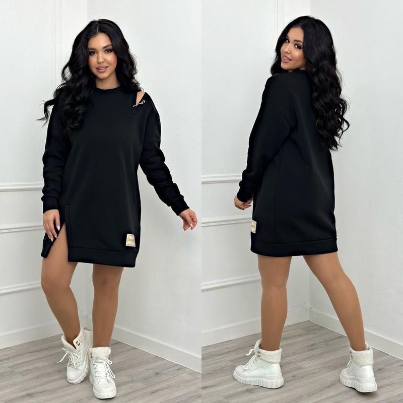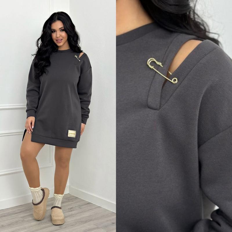 ❤️Цвет: черный, молоко, графитУдлиненная, теплая туника с привлекательным вырезом на плече. Декорирована булавка и нашивкой.