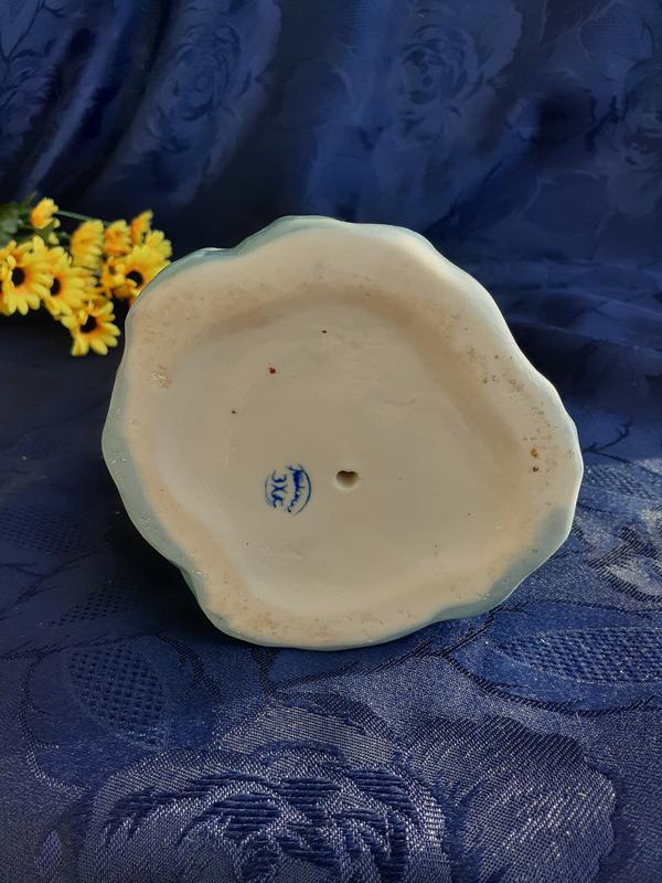 Фарфор, глазурь, ручная роспись. На донной части клеймо завода, характерно для 1956-1972 годов.