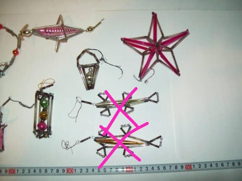 Разные ёлочные игрушки времён СССР . Цена указана за одну любую. Продаётся в состоянии как есть, без претензий и возврата. Все вопросы по состоянию пожалуйста задавайте до покупки.Состояние на фото.Дополнительные фото по желанию.Постараюсь ответить на все Ваши вопросы до покупки. Отправлю после оплаты на карту "Приват банка". Предоплата в размере стоимости лота,а доставку оплачивает покупатель при получении.Отправлю Новой почтой по Украине,стоимость доставки по тарифам "Новой Почты".