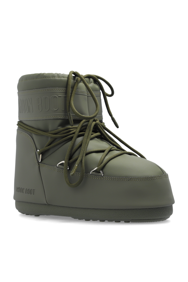 Introducing the exclusive Icon Low Rubber snow boots from the renowned designer MOON BOOT. These boots epitomize a harmonious blend of functionality and contemporary elegance, making them a quintessential choice for winter. Crafted with a distinctive, robust design, the Icon Low Rubber snow boots feature a high-top silhouette that offers exceptional protection against snow and cold. The rounded shape adds a modern, sporty touch to your winter wardrobe. The exterior is meticulously crafted from premium rubber, endowing the boots with waterproof qualities. The interior is luxuriously lined, ensuring unparalleled comfort and warmth during wear. The top of the boots is adorned with an embossed MOON BOOT logo, while the lacing system with metal eyelets provides a secure and customized fit. These green-hued boots boast a solid, anti-slip sole, enhancing safety on icy surfaces. Designed specifically for men, they seamlessly combine style and practicality, ideal for winter's harsh conditions. Why Choose This Product? Waterproof rubber exterior for ultimate protection. Luxuriously lined interior for superior warmth and comfort. Embossed logo and metal eyelets for a refined aesthetic. Anti-slip sole for enhanced safety on slippery surfaces. Stylish green color for a versatile, fashionable look.