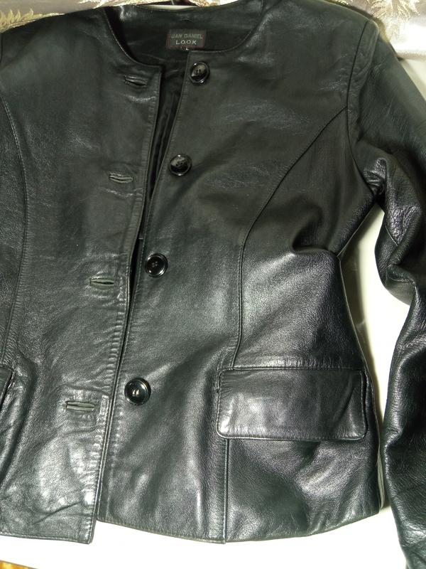 Кожа натуральная, очень мягкая, нежная, одевала очень редко стала маловата,ог 90 см, рукава 59 см, длинна 54см, сзади по бокам разрезы .