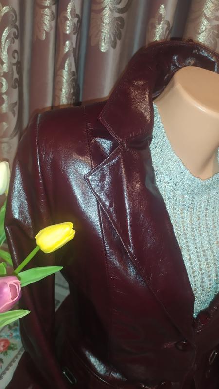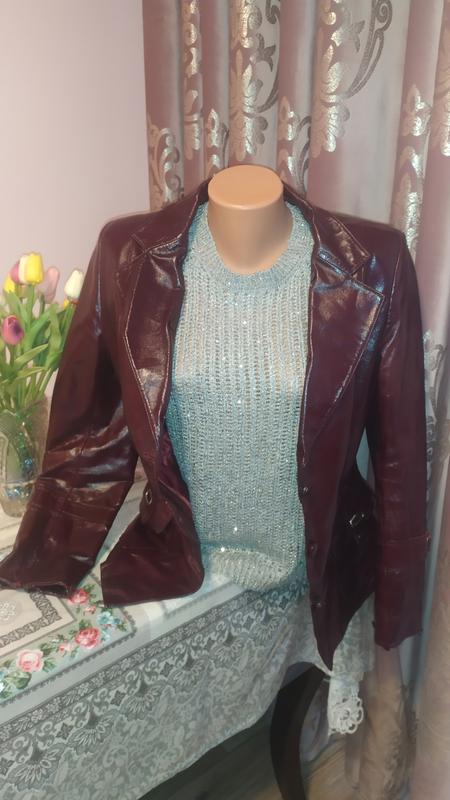 Очень красивая кожаная курточка-пиджак сочного, насыщенно-вишневого цвета. Атласная подкладка, элегантная модель по типу мужской пиджак, слегка приталенная. Есть пояс.