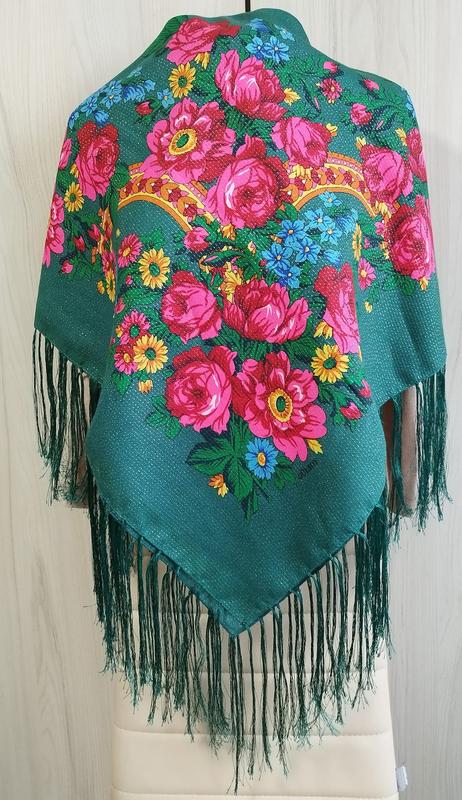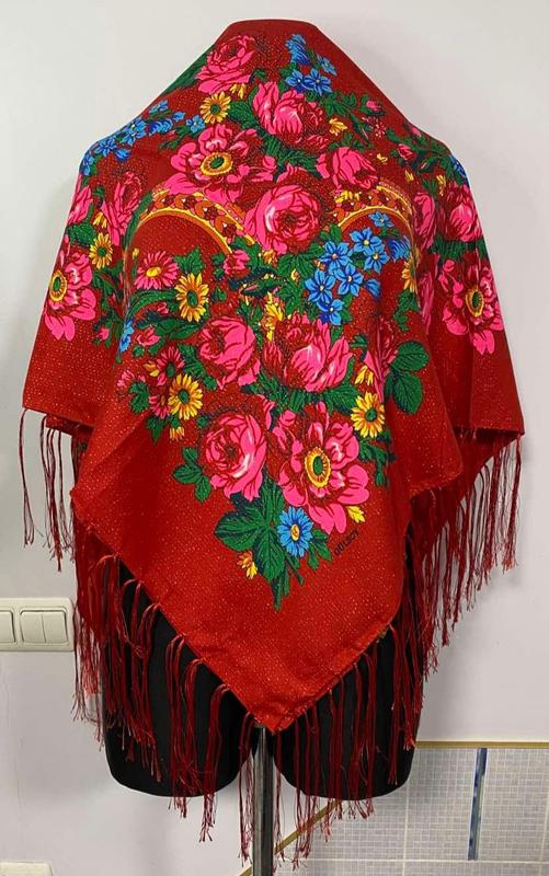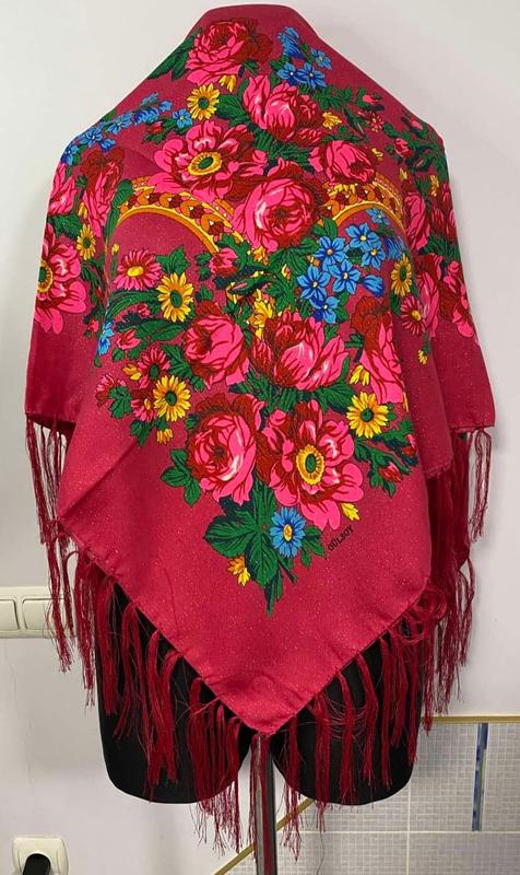 Розкішна українська хустка, з квітами, з шовковими китицями і люрексом. Тканина плотна, не ковзає.