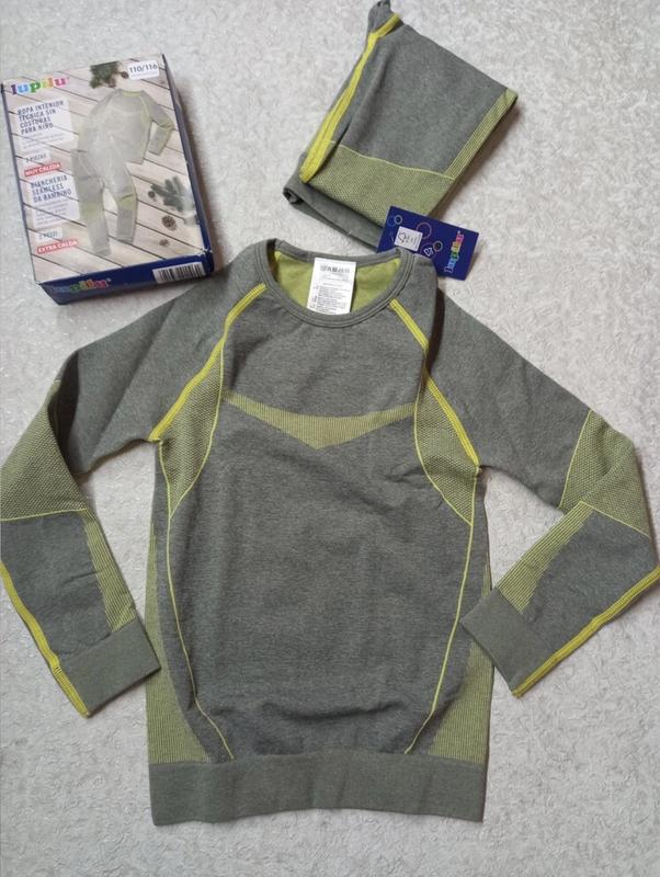 Термобелье Lupilu детское. Комплект зонального термобелья от немецкого бренда Lupilu Разные зоны имеют разную плетение, что обеспечивает лучшую терморегуляцию. Ткань мягкая, эластичная. Очень приятная на ощупь. Оптимальная посадка и стабильность размеров благодаря волокну LYCRA® Бесшовные - без раздражающих боковых швов Профессиональная функциональная одежда (термобелье) выполнена по уникальной технологии, соответствующей структуре человеческого тела. Быстро высыхает и быстро выводит влагу. Идеально подходит для активных зимних видов спорта, для повседневного использования, активных прогулок, футбола, бега в холодное время года! Прекрасно подойдет для тренировок любой интенсивности и повседневной носки Материал:61% полиамид, 28% полиэстер, 11% эластан