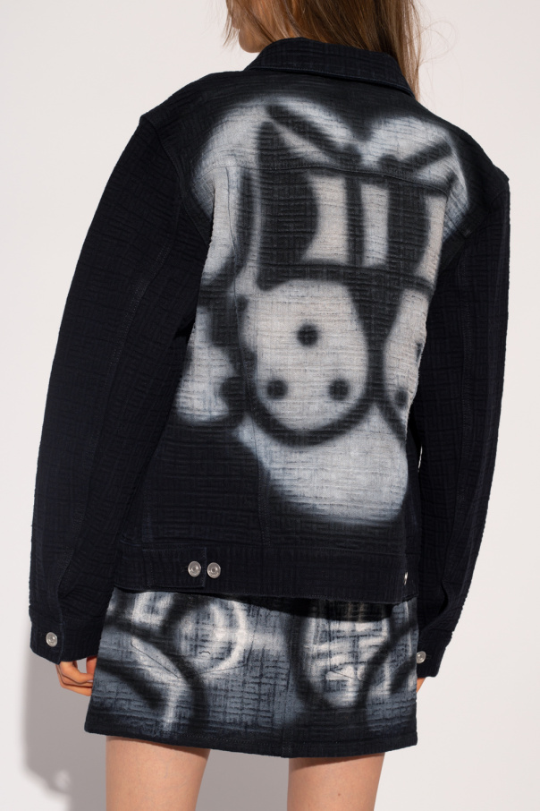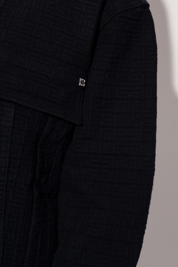Black denim jacket from Givenchy. Made of cotton, this garment features buttons, a monogram pattern, two slip pockets, two flap pockets and long sleeves.